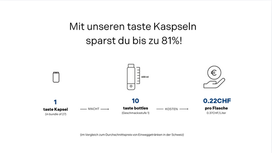 Eine taste Kapsel reicht für 3 bis 6 Liter Wasser – je nach gewünschter Intensität: