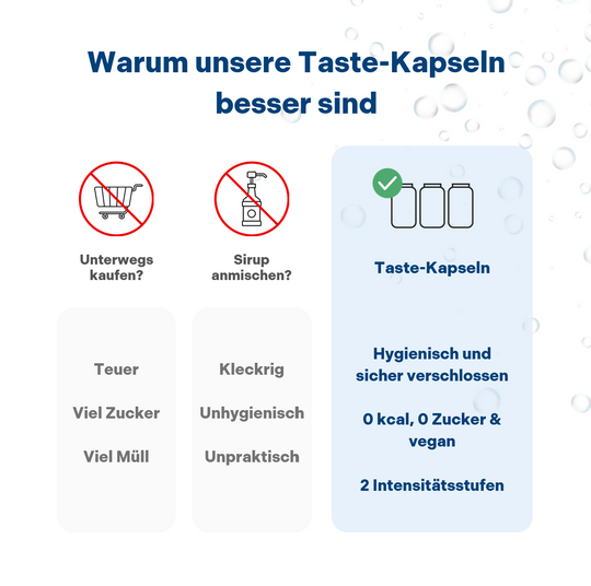 Starte jetzt deine Reise in die Welt von Taste und genieße Sprudelwasser jederzeit frisch, fruchtig und prickelnd!